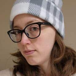 Gray Plaid Beanie for Women, Cozy Fleece Hat, Pom Beanie Hat, Gender Neutral Winter Accessories