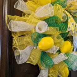 Nice and vibrant wreath that is perfect for summer time! The lemons are the same size as normal lemons.