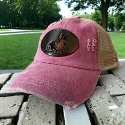 Distressed, trucker style hat with your favorite dog breed in a 3D leatherette patch.