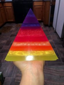The Great Pyramid of Glow is 6.5 inches tall and weighs about 5lbs.